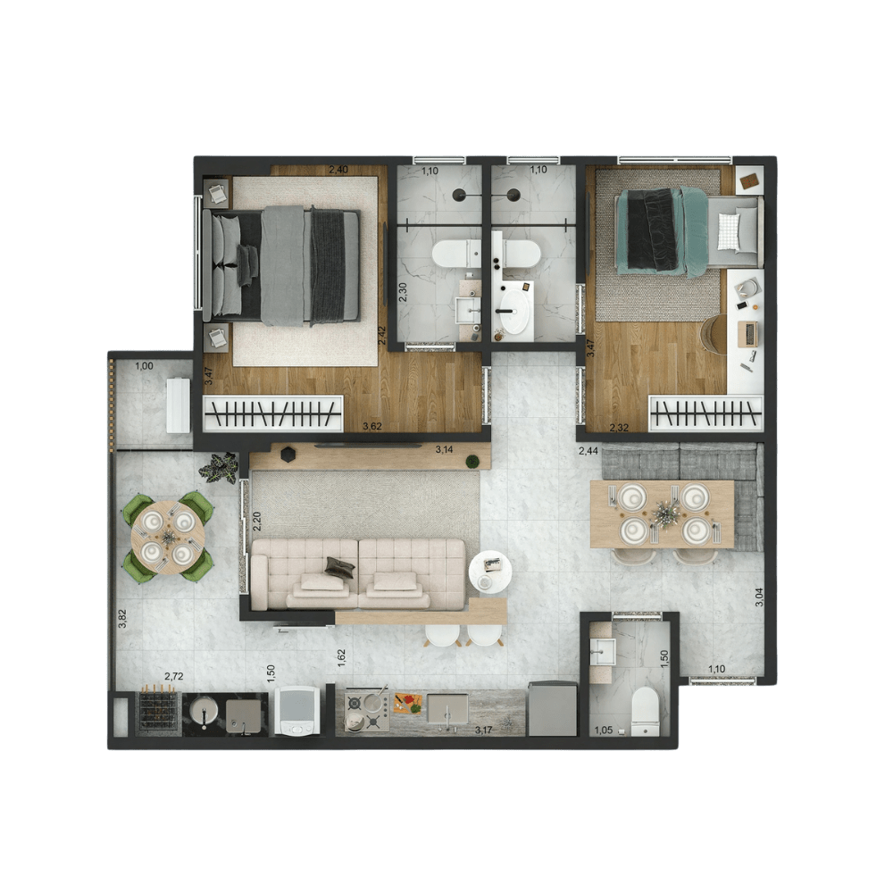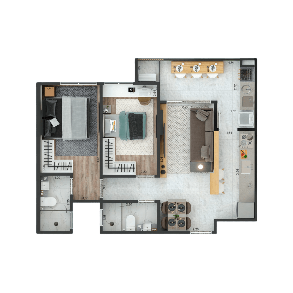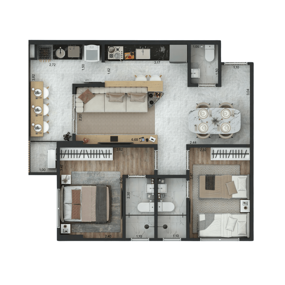 ou 1 Suíte + 1 Dormitório